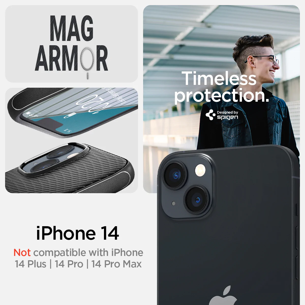 Walk the line. Mag Armor MagFit snaps on your iPhone 14 for protection with a modern twist. Drop your habit of dropping things with its matte-textured design. Its striking look matches function with even better MagSafe compatibility. Do you. We got you.