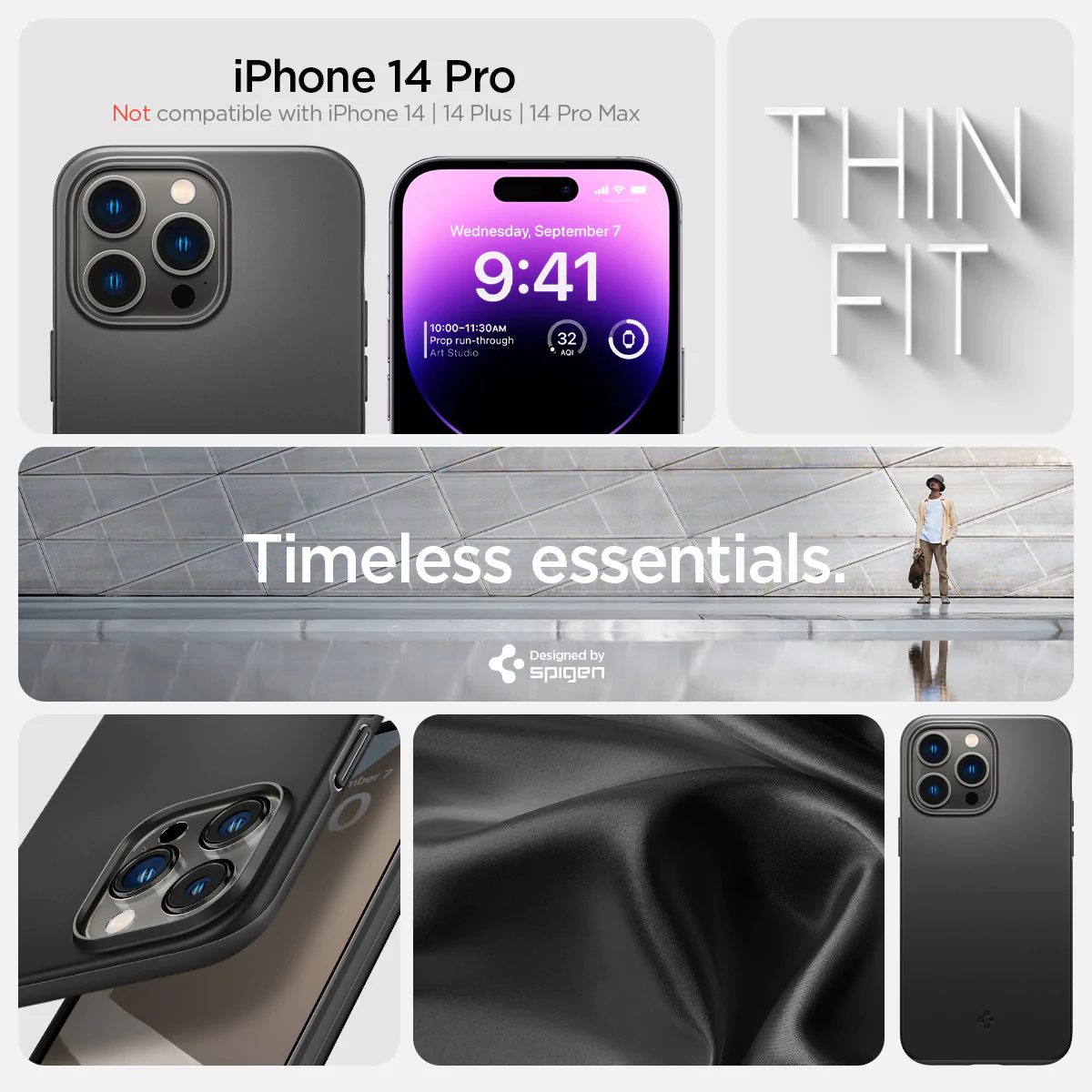 Put the thin in nothing. Cover your iPhone 14 Pro with Thin Fit for a timeless look. It features a slim silhouette that comfortably fits in your pocket and your hands. Don’t underestimate its minimal design: its drop protection is anything but minimal.