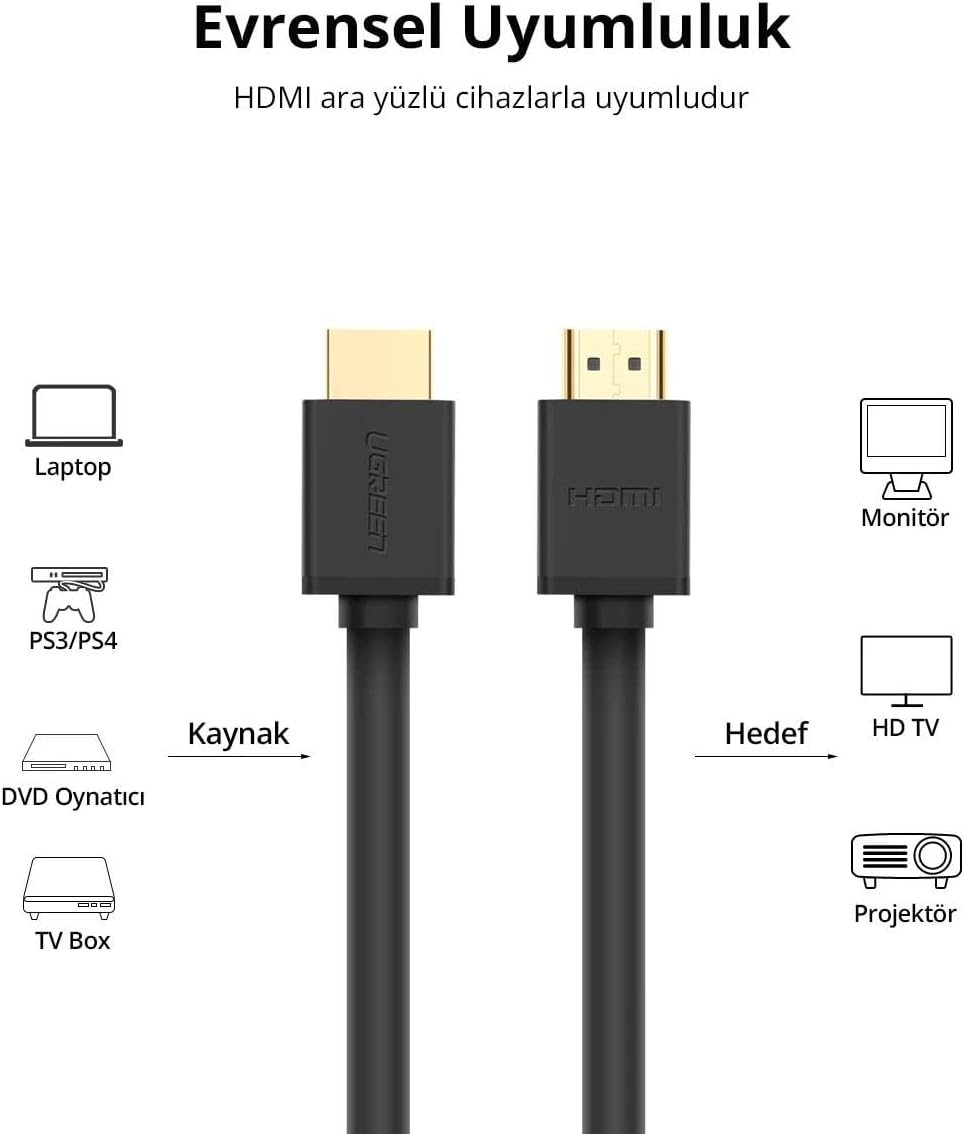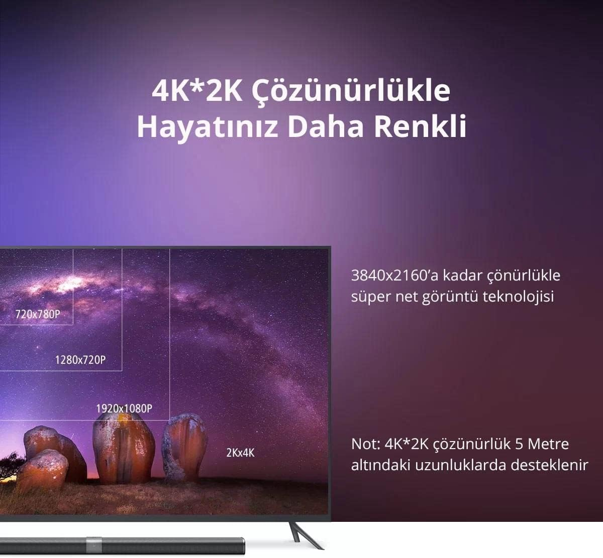 The UGREEN 10108 HDMI 2.0 to HDMI Male Cable with Ethernet (10m) provides a one-cable solution for many of your home entertainment needs. It could be applied to connect your HDTV to your Blu-Ray Player, 3D Television, Roku, Boxee, Xbox360, PS3, Apple TV, Streaming Player, HD Cable Box, PC or any HD device with an HDMI output. Then you could experience high quality audio and video from your home.
